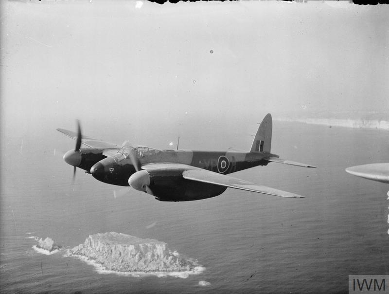 Mosquito Mark II, DZ230 YP-A, piloted by Wing Commander P G Wykeham-Barnes, Commanding Officer of No. 23 Squadron RAF, based at Luqa, flying past Filfla Island south-west of Malta