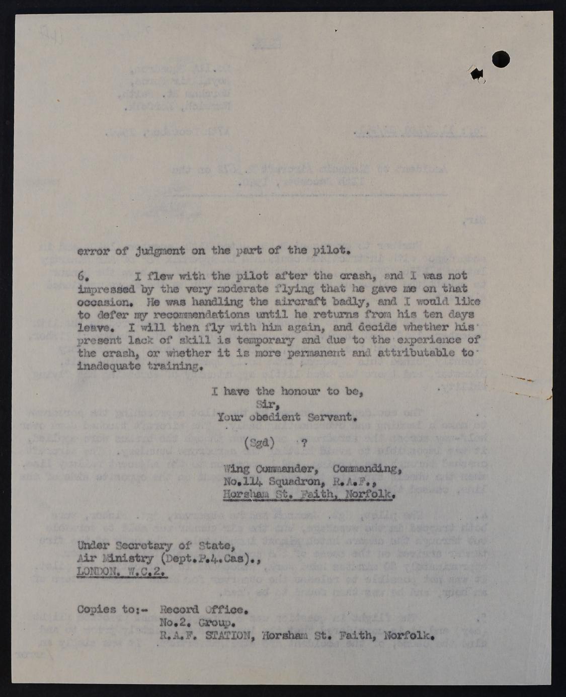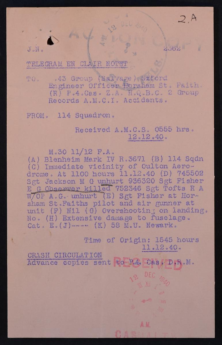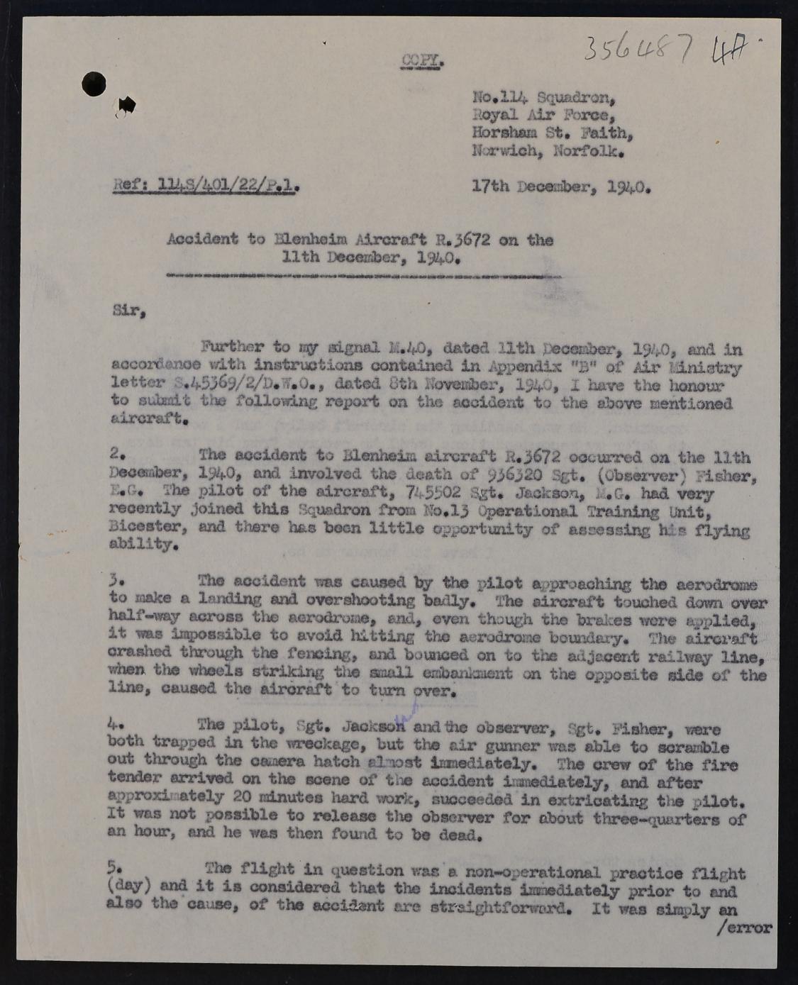 Information below courtesy of Kate Wood whose Great Uncle Sgt Eric Fisher was an observer in the plane which crashed, and is buried at Burton on Trent cemetery in Staffordshire.