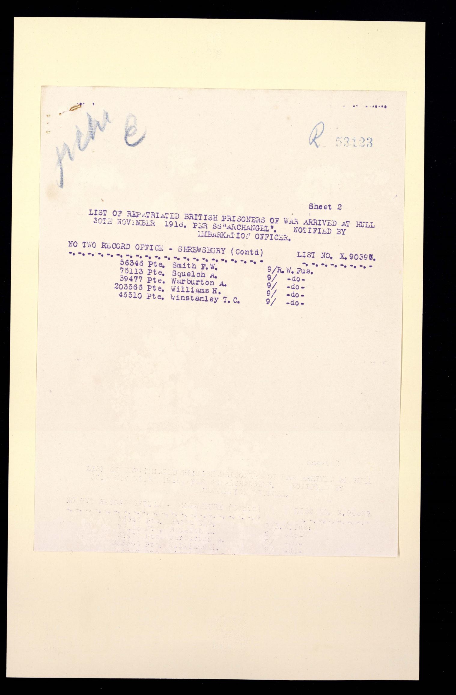 Repatriated British Prisoner of War at Hull per S.S. Archangel