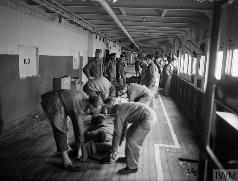 On the promenade deck as sick and wounded men returning to the US were brought on board