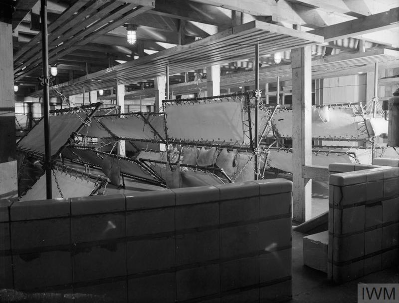 The swimming pool is now a troops sector, with tiers of bunks for the men